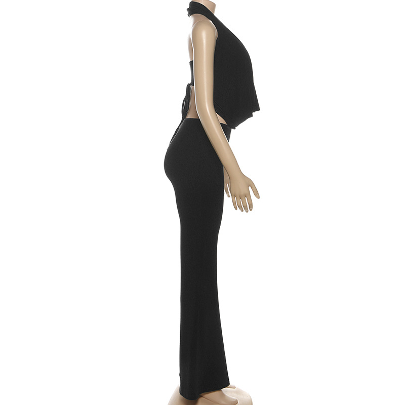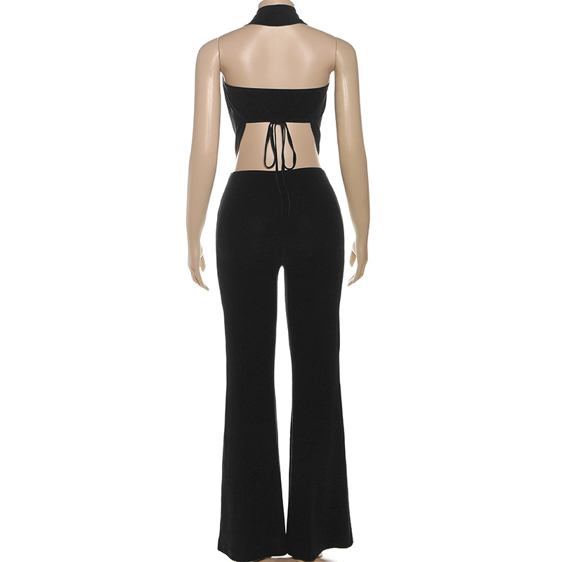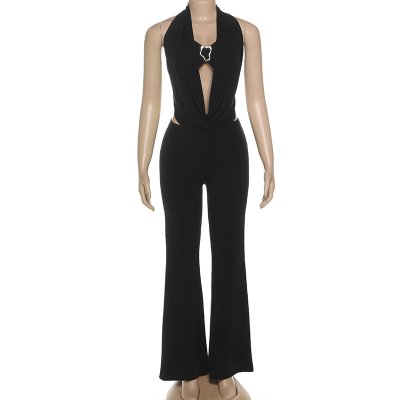Women Clothing Autumn Sexy Sexy Tube Top Halter Deep V Plunge neck Backless Jumpsuit